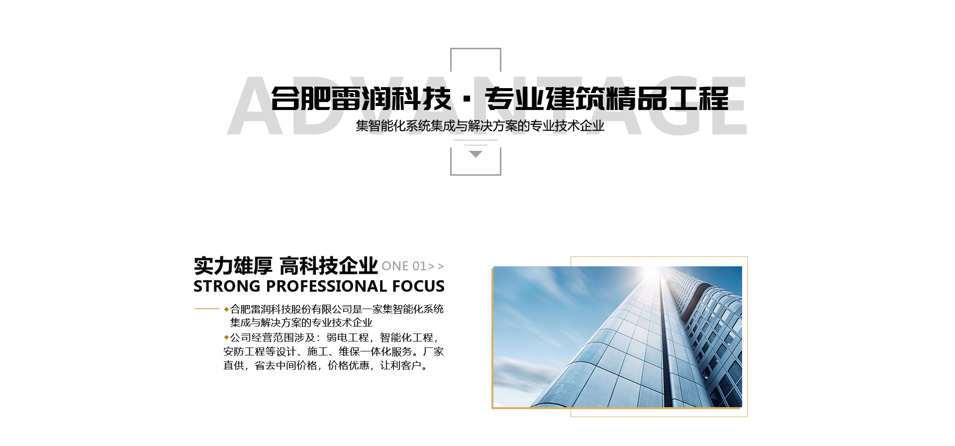 合肥雷潤(rùn)科技股份有限公司成立于2014年,經(jīng)過(guò)多年的蓄勢(shì)發(fā)展,已成為行業(yè)內(nèi)頗具影響力的智能化系統(tǒng)集成與解決方案的技術(shù)企業(yè)。公司經(jīng)營(yíng)范圍涉及:建筑智能化系統(tǒng)、綜合布線(xiàn)、安全技術(shù)防范系統(tǒng)、車(chē)牌識(shí)別系統(tǒng)、門(mén)禁控制系統(tǒng)、廣播會(huì)議多媒體、計(jì)算機(jī)網(wǎng)絡(luò)、應(yīng)用軟件定制開(kāi)發(fā)、機(jī)房工程、多媒體展廳、LED屏信息發(fā)布系統(tǒng)等的設(shè)計(jì)、施工、維保一體化服務(wù)。同時(shí)代理經(jīng)銷(xiāo)各類(lèi)電子電氣產(chǎn)品。我們與國(guó)內(nèi)外眾多品牌供應(yīng)商建立了良好、穩(wěn)固的合作伙伴關(guān)系(如:海康威視、天地偉業(yè)、IBM、華為、H3C、銳捷、APC、康普、Honeywell、R&M、BOSCH、捷順、HID、TOA、迪士普、SAMSUNG等)。為單位、醫(yī)院、學(xué)校、國(guó)企、外企、房產(chǎn)物業(yè)等客戶(hù)提供的系統(tǒng)集成和產(chǎn)品技術(shù)服務(wù),并獲得用戶(hù)好評(píng)。 我們擁有一支朝氣蓬勃技術(shù)的團(tuán)隊(duì),現(xiàn)有本科學(xué)歷以上員工占總?cè)藬?shù)的80%,并且擁有12名中工程師、7名注冊(cè)建造師、各類(lèi)技術(shù)資質(zhì)工程師15名。具備的技術(shù)力量和的實(shí)施團(tuán)隊(duì)。我們始終秉承I...